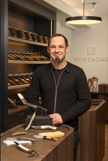 Installé au cœur de Nantes, Eustache, coutelier fabricant, propose tout une gamme de couteaux pliants, couteaux de table et couteaux de cuisine. Entièrement dessinés et assemblés dans leur atelier de production par des artisans couteliers passionnés, les couteaux Eustache allient tradition et modernité. Bois régionaux, bois exotiques, cornes, damas, carbone… Eustache utilise les matériaux les plus nobles pour réaliser des couteaux d’exception. Vous pourrez également trouver dans la boutique toute une gamme d’accessoires pour l’affûtage et l’entretien de vos couteaux.