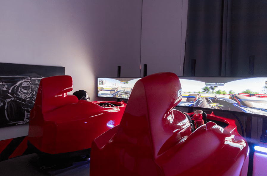 les 12 simulateurs de pilotage disponibles dont 5 baquets semi-pro, 5 simulateurs Pro Direct Drive et 2 cockpits de F1. Régalez-vous sur des appareils aux technologies dernier cri et embarquez pour une expérience grisante et plus vraie que nature ! En prime, une terrasse-paddock extérieure vous accueille toute l’année pour une pause détente avant ou après l’effort, entre pizzas, gaufres et boissons !